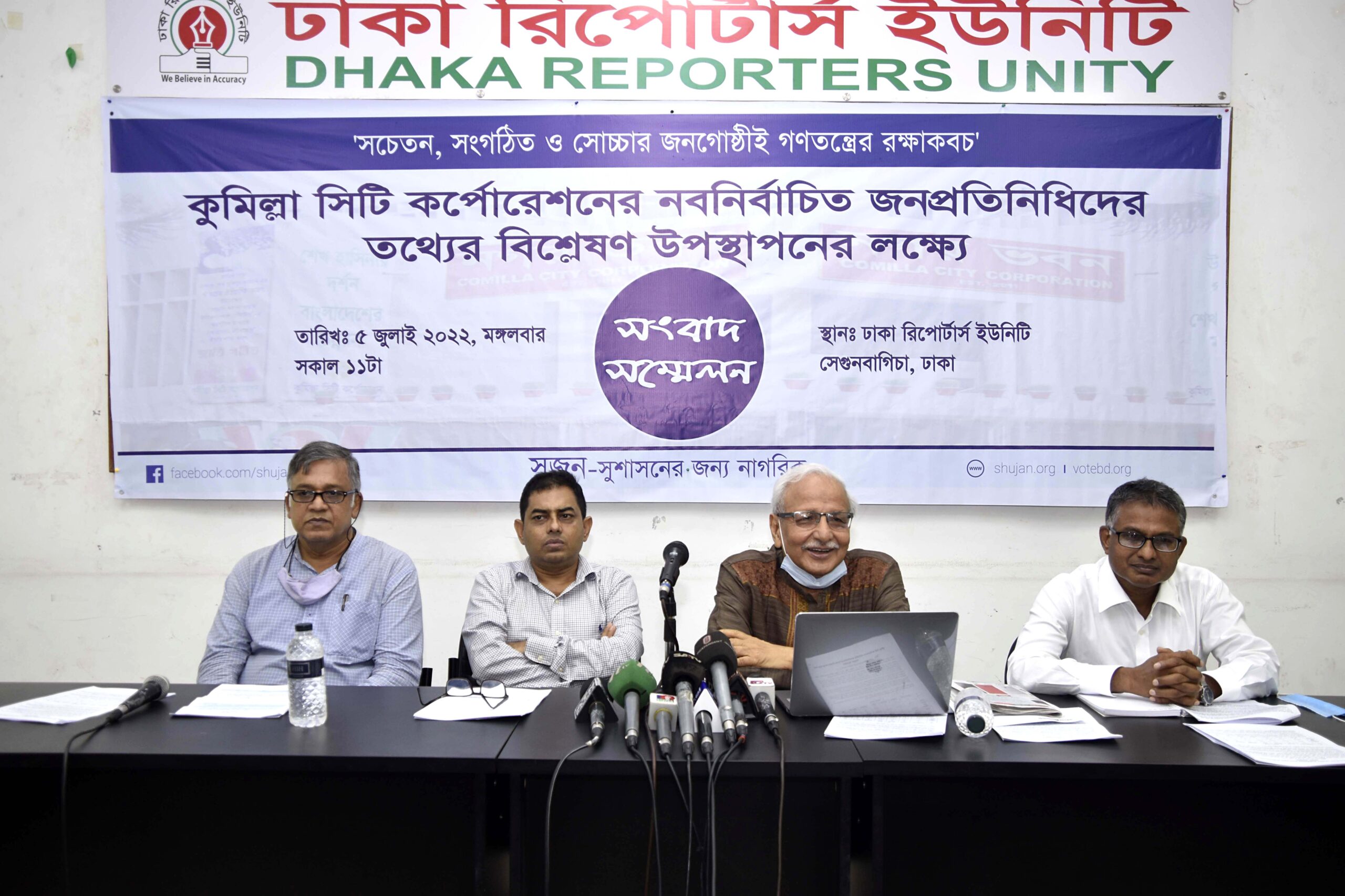 গত ১৫ জুন ২০২২ অনুষ্ঠিত কুমিল্লা সিটি কর্পোরেশনের নবনির্বাচিত জনপ্রতিনিধিদের তথ্যের বিশ্লেষণ এক সংবাদ সম্মেলনের মাধ্যমে তুলে ধরেছে নাগরিক সংগঠন সুজন-সুশাসনের জন্য নাগরিক। সংবাদ সম্মলেনটি আজ ০৫ জুলাই ২০২২, মঙ্গলবার[…]
