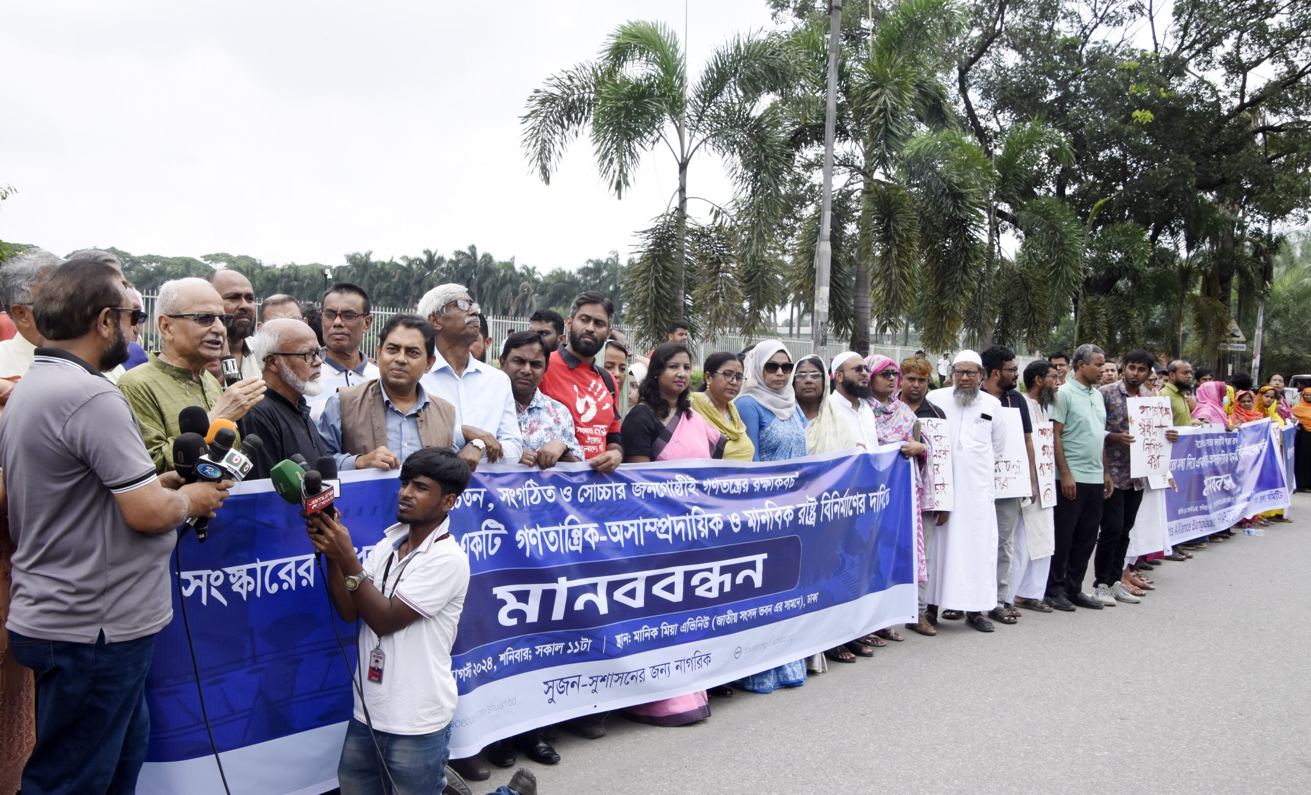রাষ্ট্র সংস্কারের মধ্য দিয়ে একটি গণতান্ত্রিক-অসাম্প্রদায়িক ও মানবিক রাষ্ট্র বিনির্মাণের দাবিতে মানববন্ধন অনুষ্ঠিত